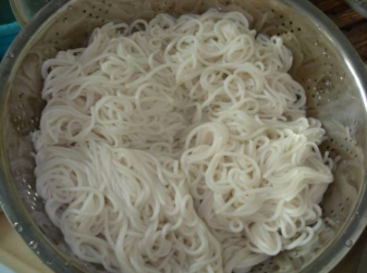 用冷水浸泡出来的米粉通常奖金都比较好,但是需要提前一晚上就开始浸泡,如果第二天要煮米粉或者炒米粉的话,我们在头天晚上的七八点就可以用凉水把米粉浸泡好,等到第二天一觉睡醒的时候,米粉差不多也就被泡软了,然后煮的时候也能够加快它的成熟速度,并且不用担心出现反应咬不动的现象。